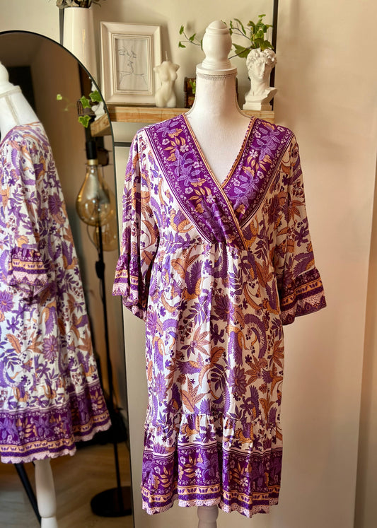 Robe fluide bohème imprimé floral violet/orangé T.U
