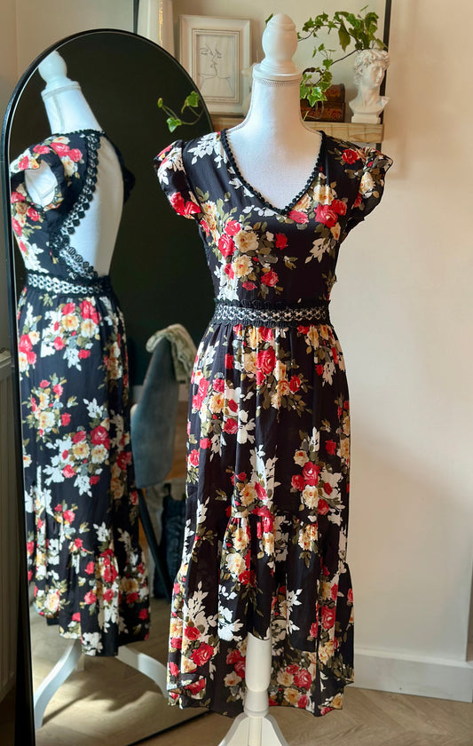 Robe longue d’été verte et rose à motifs fleuris, T.38
