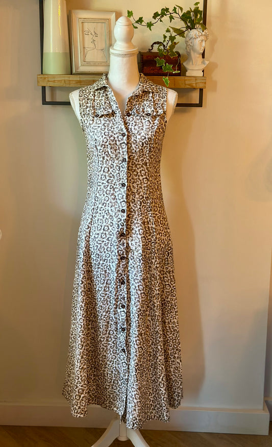 Robe longue portefeuille blanc kaki à motifs fleuris T.36
