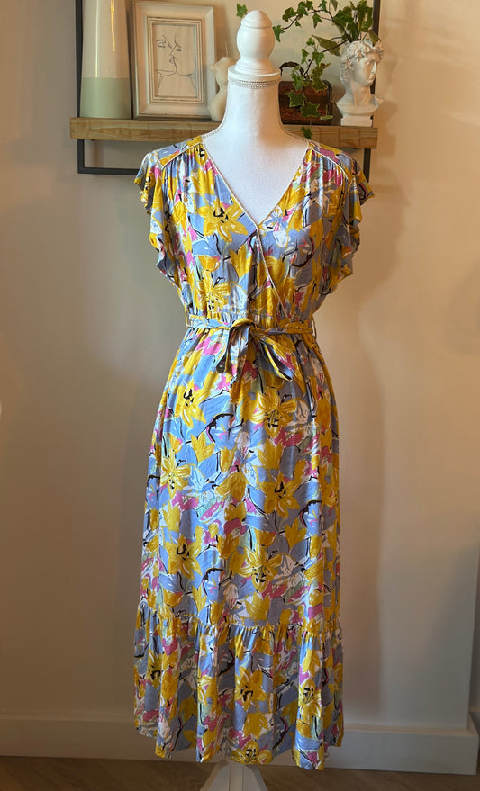 Robe longue portefeuille, imprimé fleuri coloré, T.38