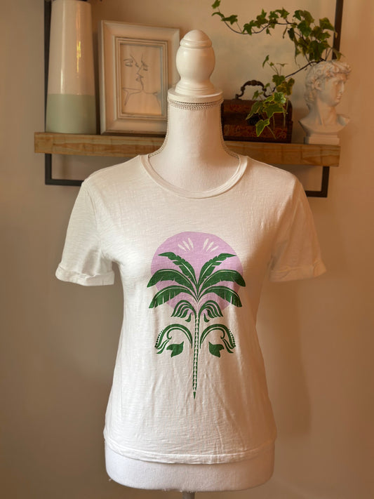 T-shirt imprimé blanc avec un imprimé de palmier, T.U (34 au 40)