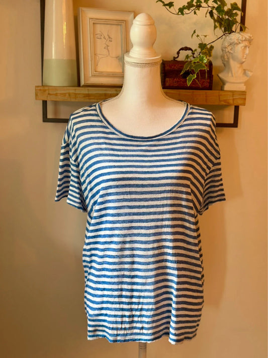 T-shirt rayé bleu et blanc – 100 % lin T.42