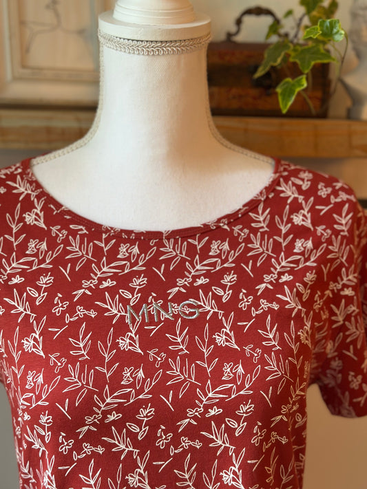 T-shirt en lin rouge et blanc à motifs T.38
