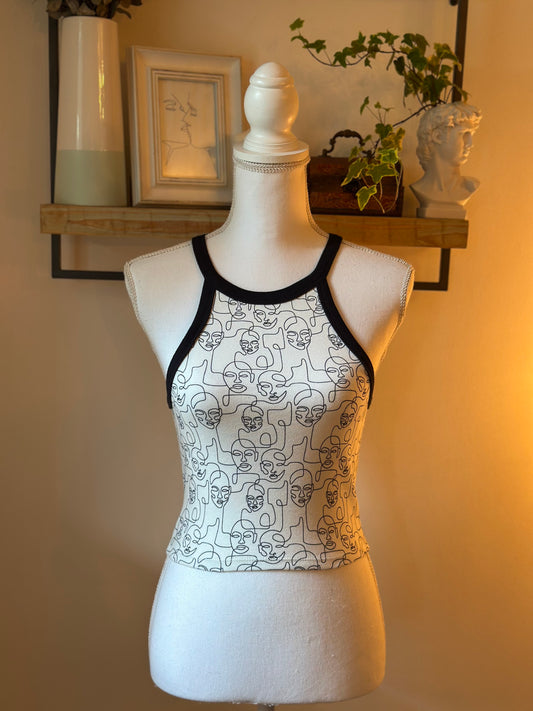 Top bustier imprimé floral noir rouge et rose – Taille S neuf