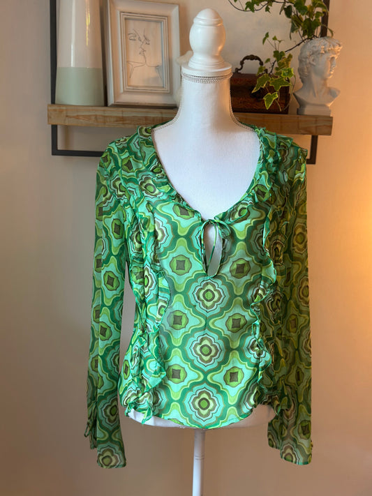 Blouse fluide à motifs fleuris verts, neuve, T.34