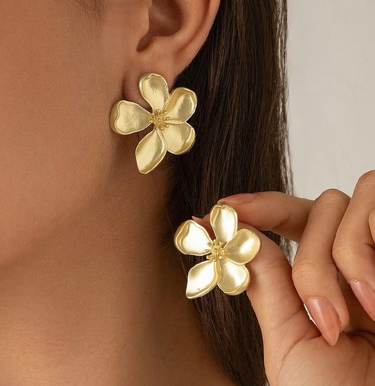 Boucles d’Oreilles Fleur en Acier Inoxydable Doré