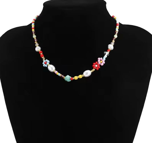 Collier en acier inoxydable avec perles colorées, neuf