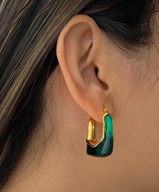 Boucles d’oreilles créoles dorées en acier inoxydable et résine verte