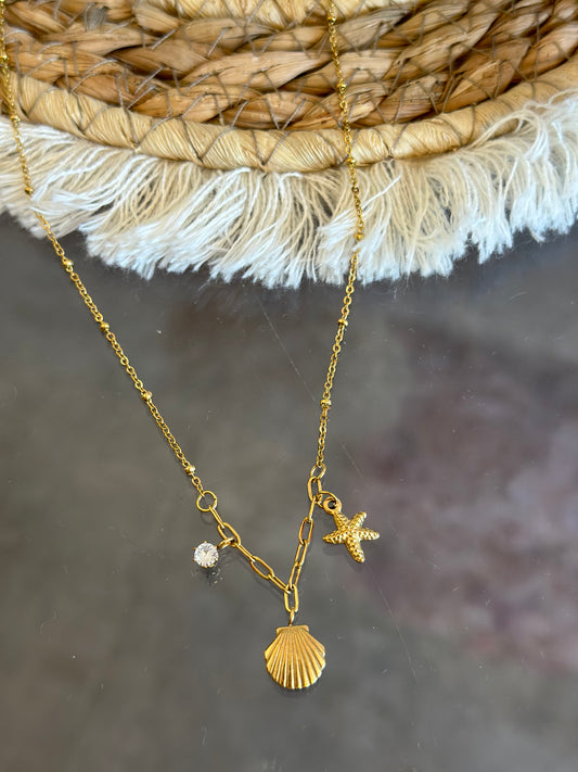 Collier doré en acier inoxydable avec pendentifs coquillages