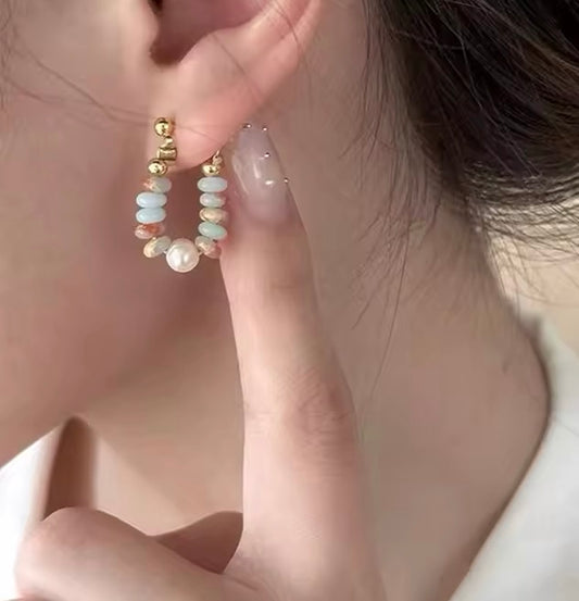 Boucles d'oreilles avec perles et pierres de couleur élégantes