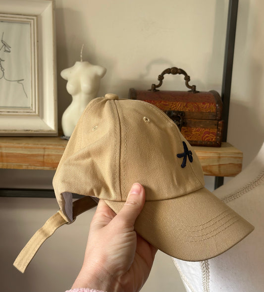 Chapeau unisexe beige kaki effet denim avec cordon neuf
