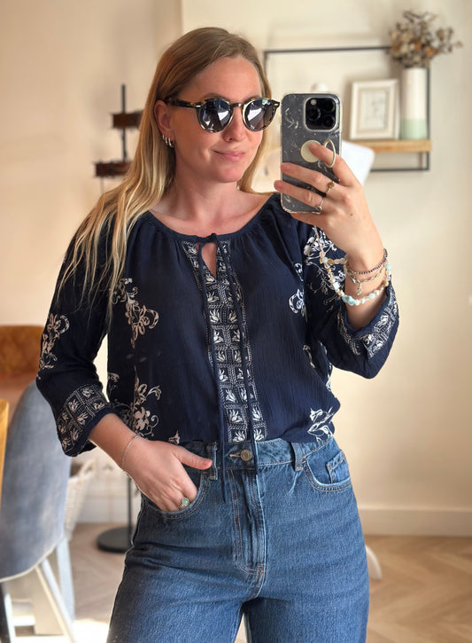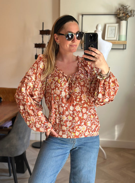 Blouse imprimé fleuri viscose manches longues boho T.36