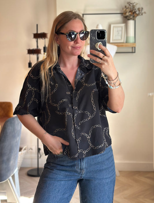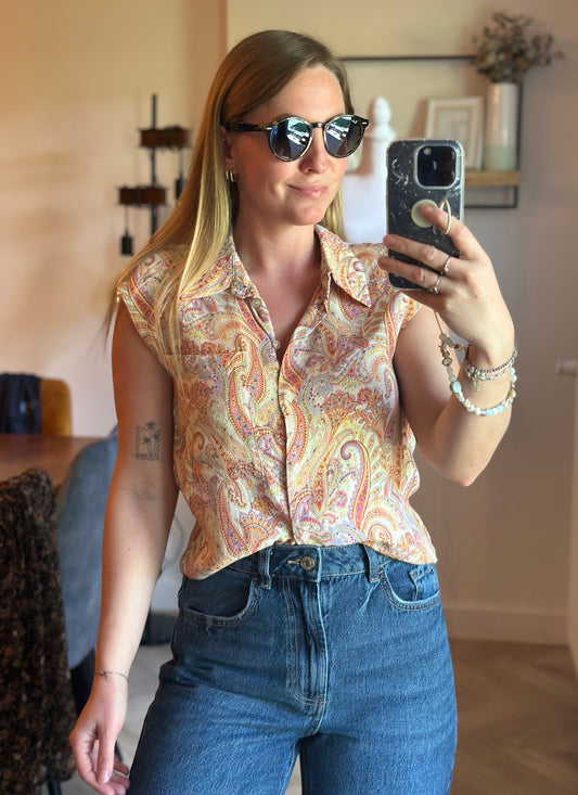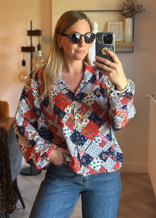Chemise vintage imprimé patchwork fleuri made in France T.U