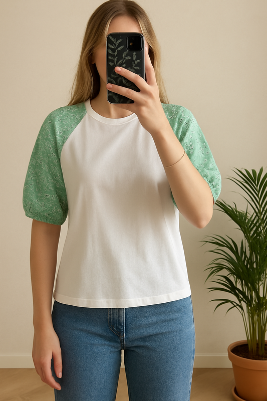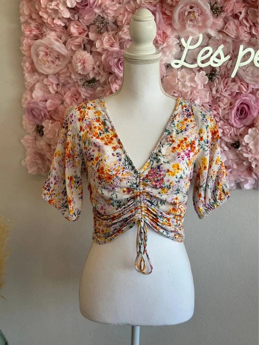 Blouse d'été à effet drapé et motifs fleuris T.38