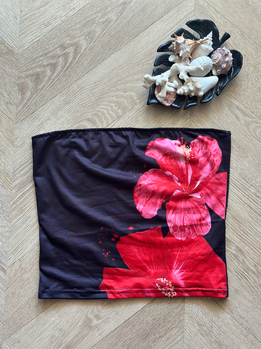 Top bustier imprimé floral noir rouge et rose – Taille S neuf