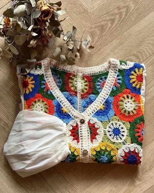 Cardigan en crochet multicolore neuf, T.36