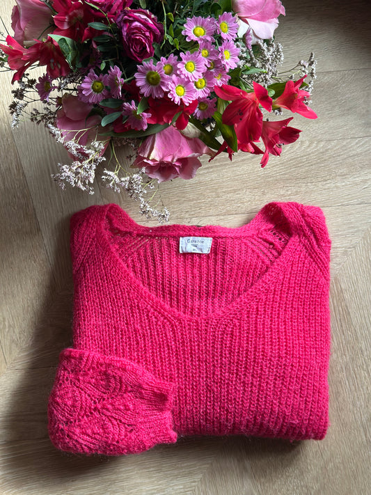 Pull maille ajourée rose mohair T.38/40