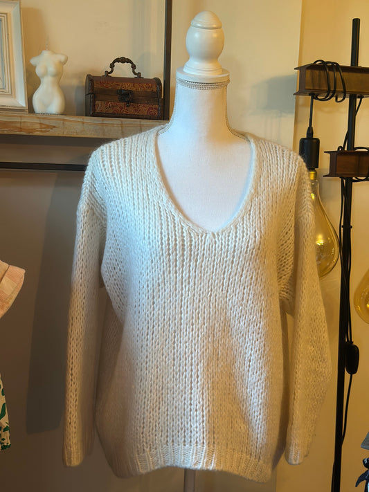 Pull en maille mohair blanche col V T.U