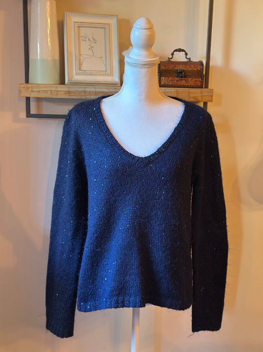 Pull à sequins mohair et laine bleu marine T.38