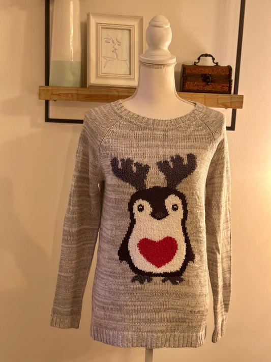 Pull gris motif pingouin Noël T.38
