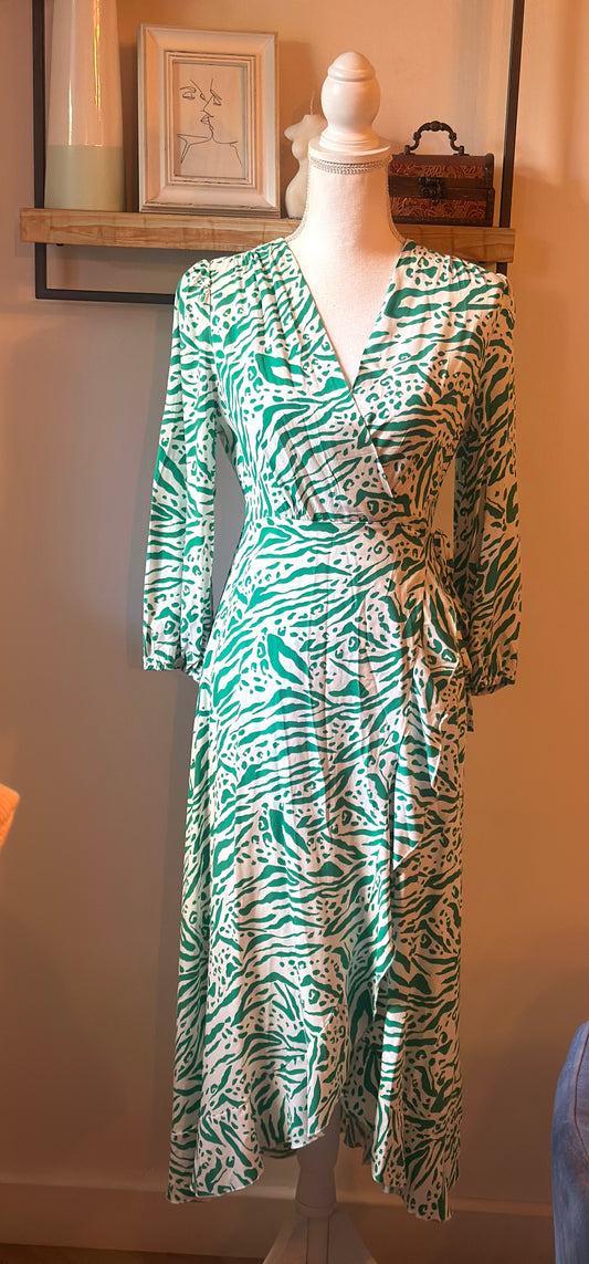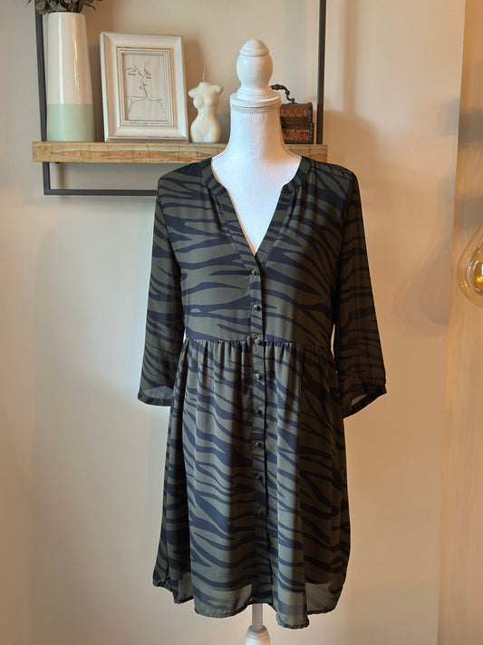 Robe mi-longue imprimé zébré kaki et noir T.38