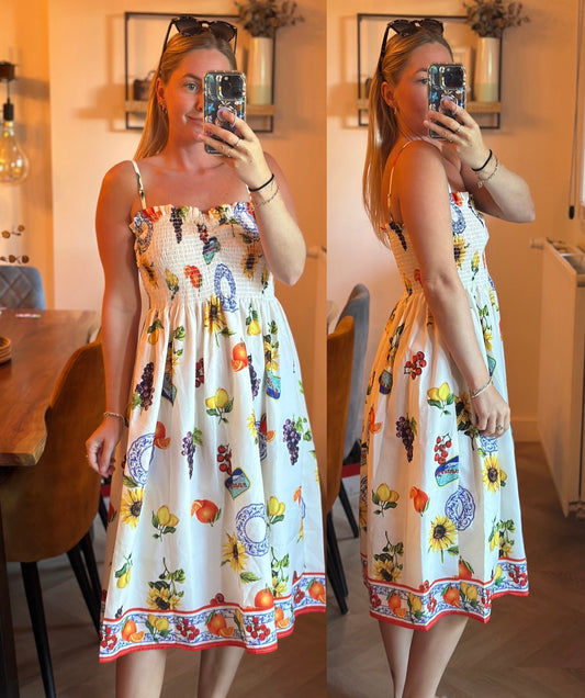 Robe d’été mi-longue imprimé fruits colorés T.36