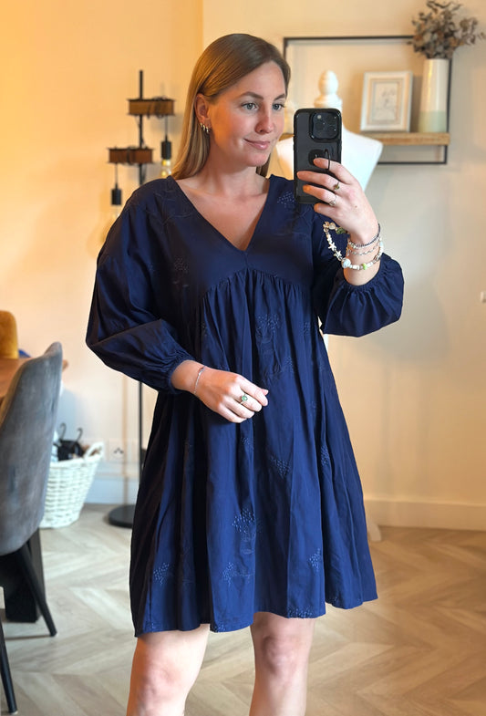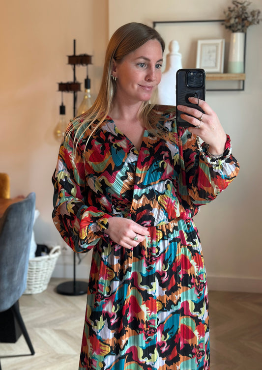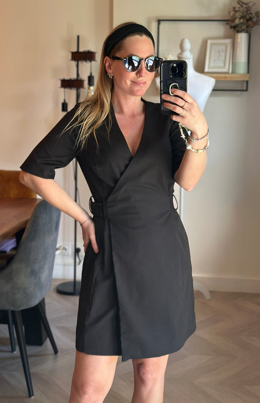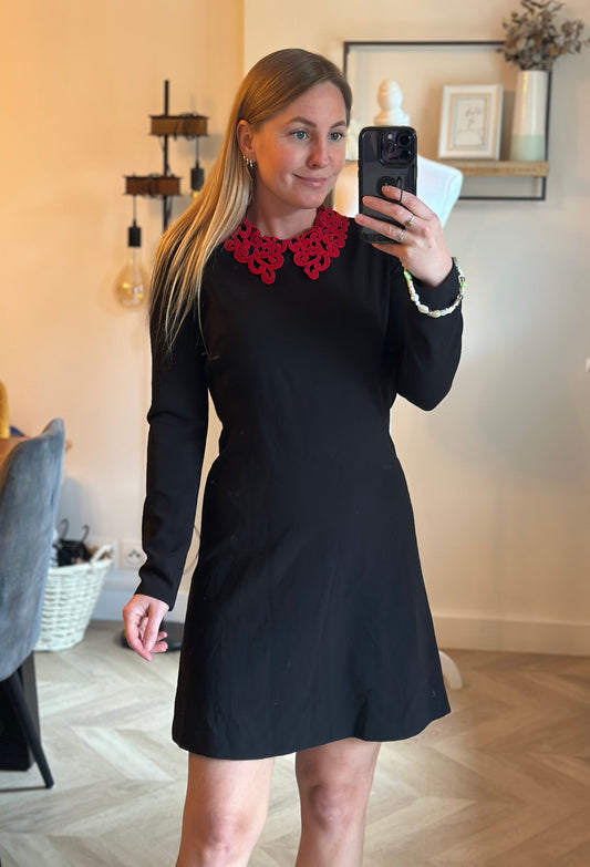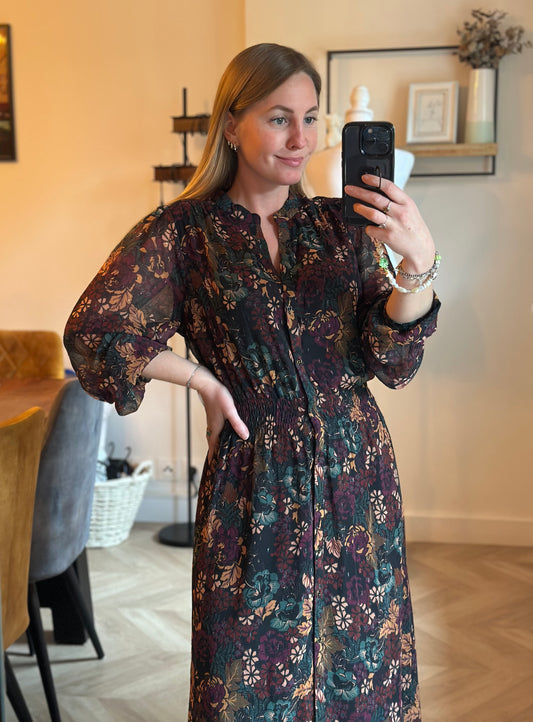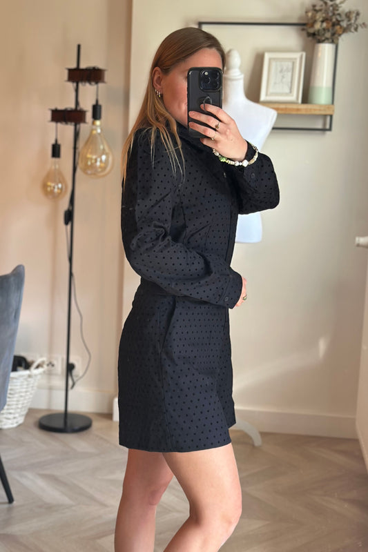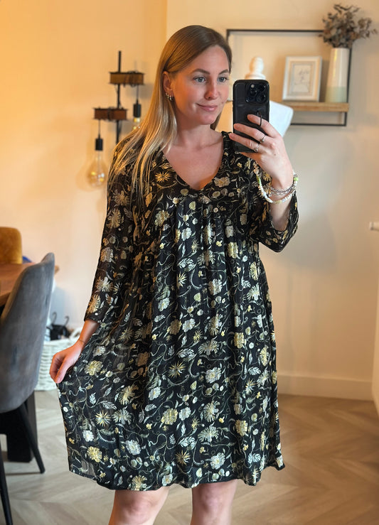 Robe fluide volantée imprimé noir col V manches longues T.38