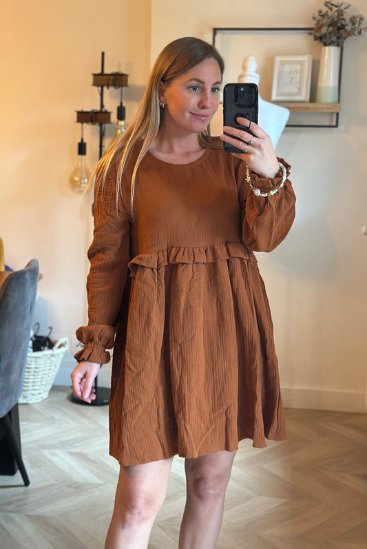 Robe gaze de coton cognac neuf avec étiquette fabriqué en France T.38