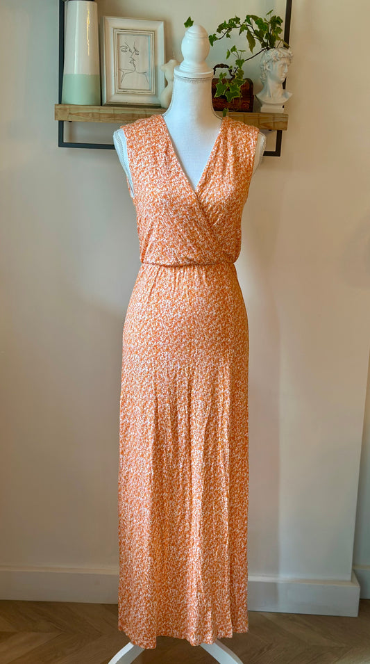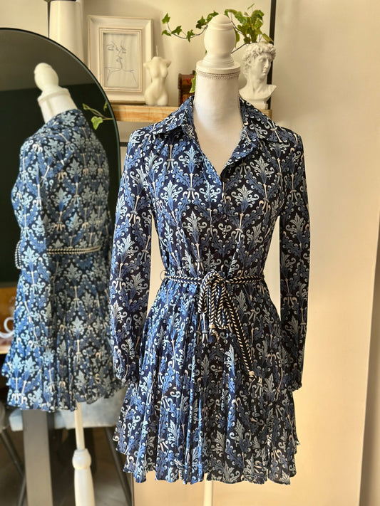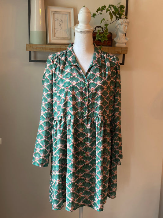 Robe d’été cache-cœur imprimé turquoise et blanc T.38