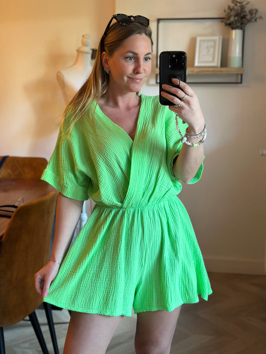 Combishort uni vert gaze de coton neuf avec étiquette TU