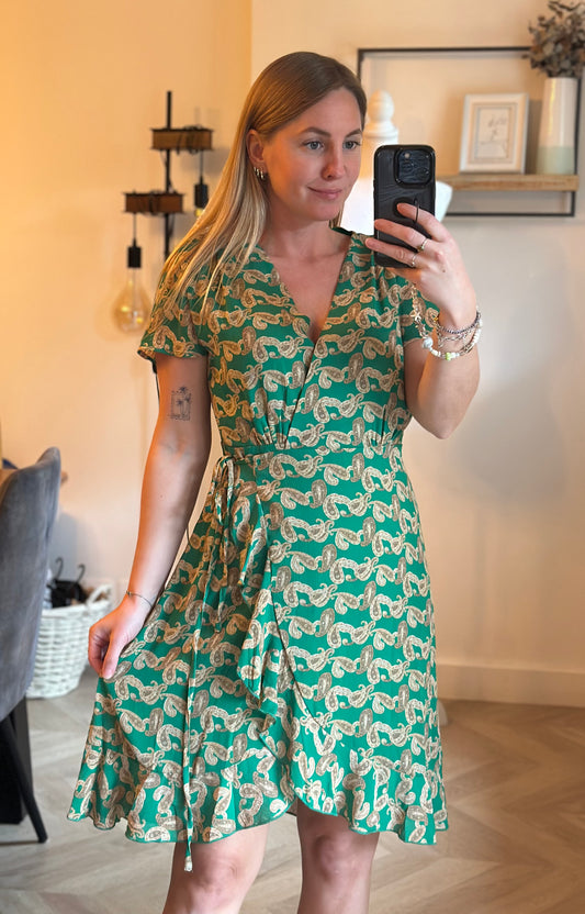 Robe portefeuille imprimé cachemire vert T.36 neuf avec étiquette