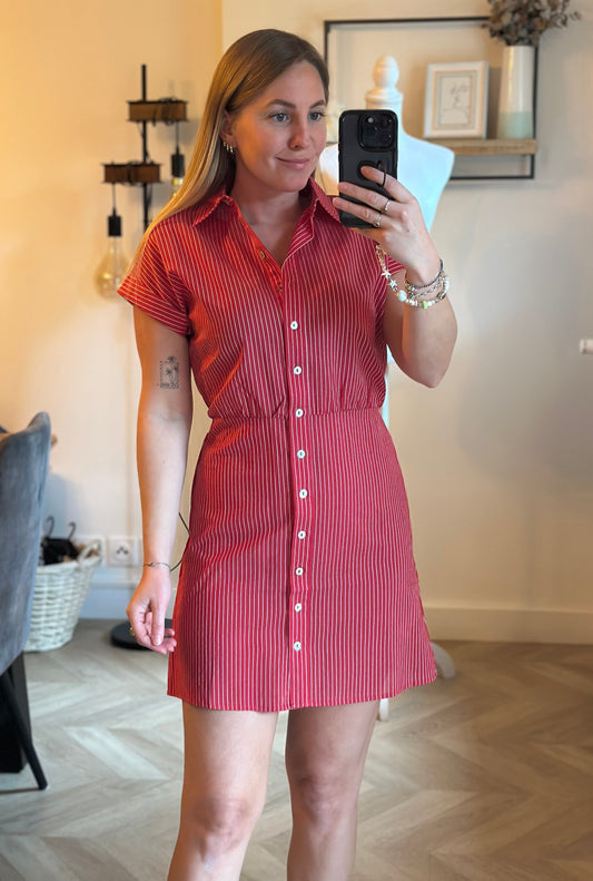 Robe chemise rayée rouge coton lyocell T.34 neuf avec étiquette
