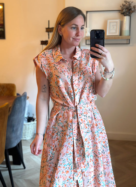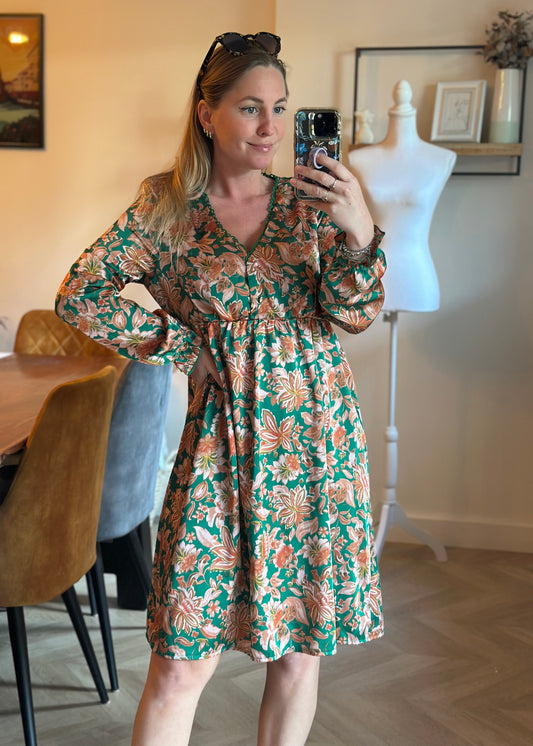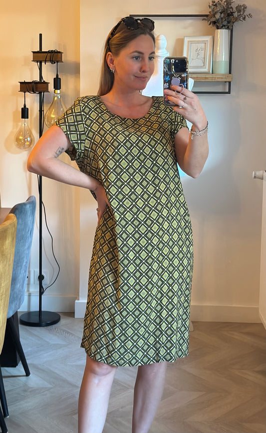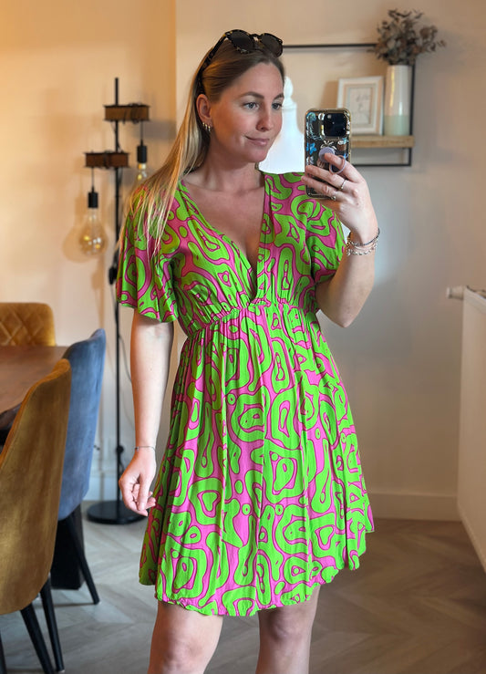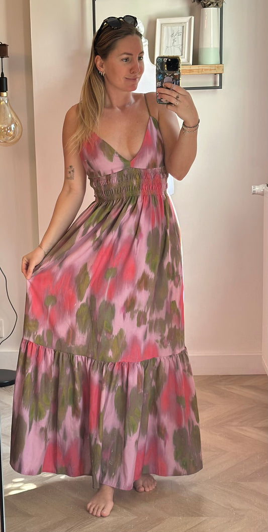 Robe fluide imprimé rose et verte en viscose T.36/38
