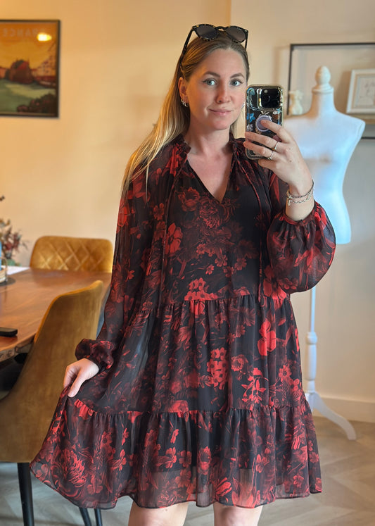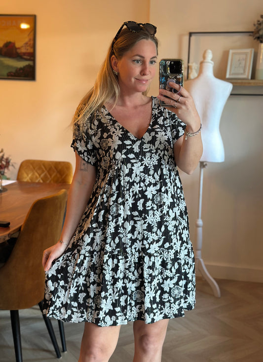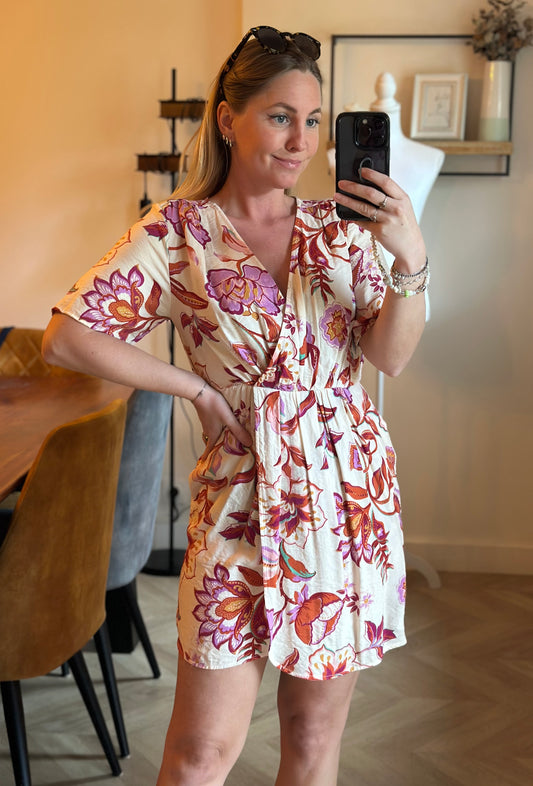 Robe courte cache-cœur imprimé floral neuf avec étiquette T.34