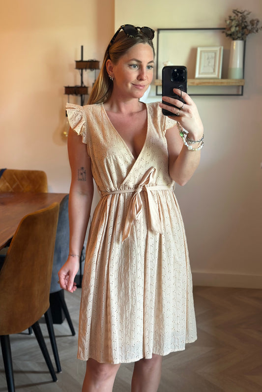 Robe broderie anglaise beige coton neuf avec étiquette T.38/40
