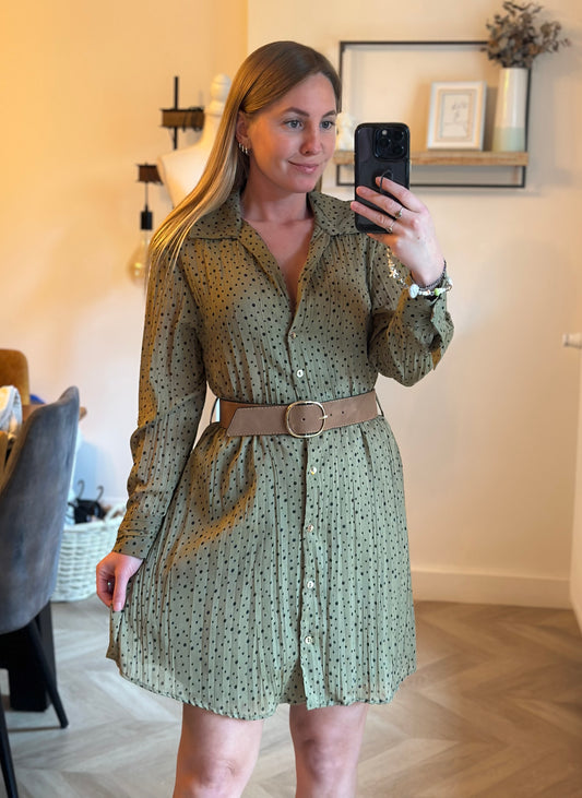 Robe chemise fluide à pois kaki T.34 neuf avec étiquette