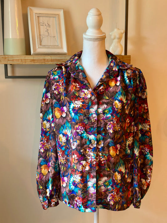 Chemise vintage imprimé patchwork fleuri made in France T.U