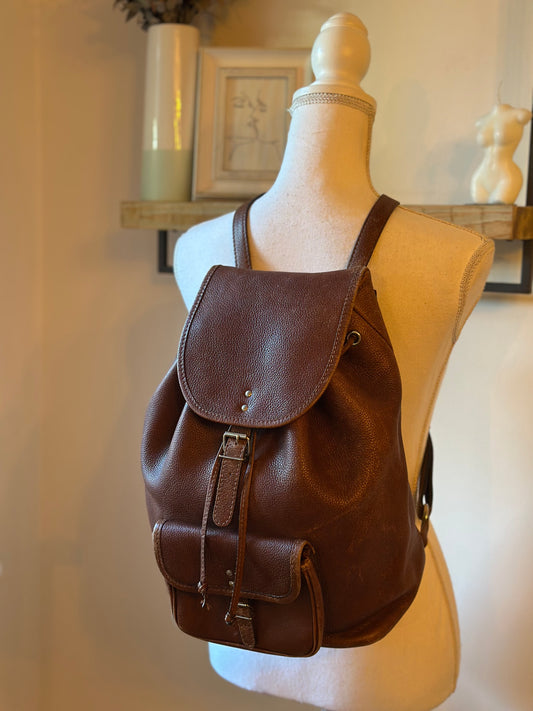 Sac à dos cuir grainé marron vintage
