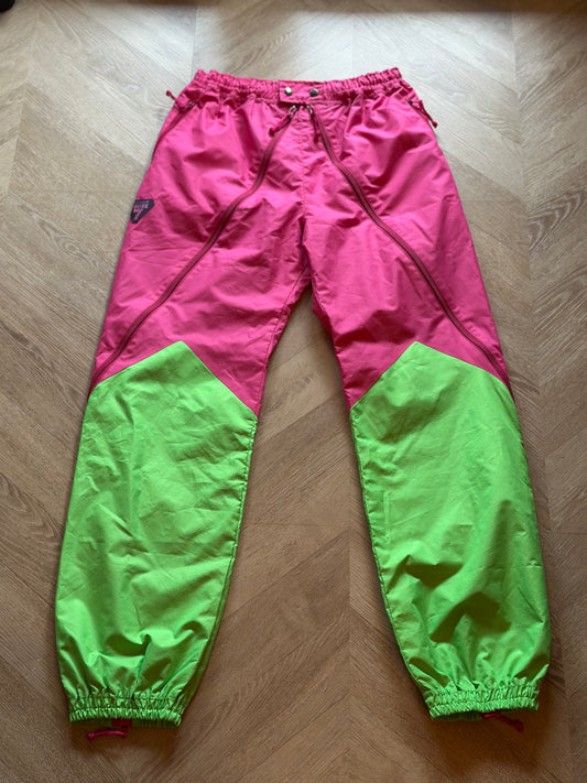 Pantalon de ski vintage 80s' bicolore rose et vert T.38