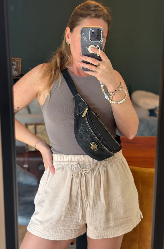 Banane vintage unie simili cuir 90s modèle unisexe
