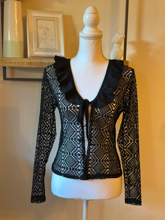 Blouse dentelle noire col volanté Vintage 20’s Tiana Mode Paris T.36