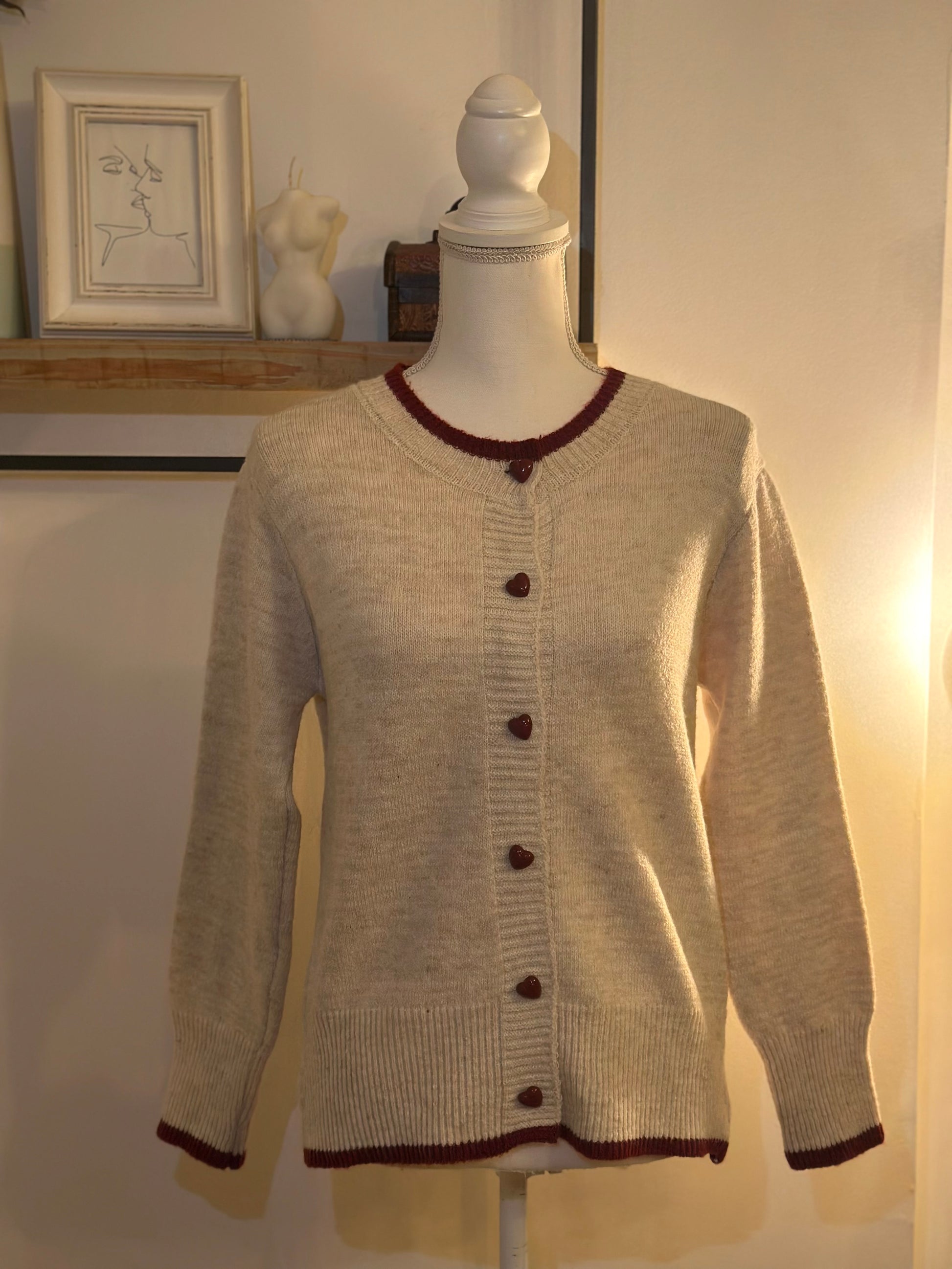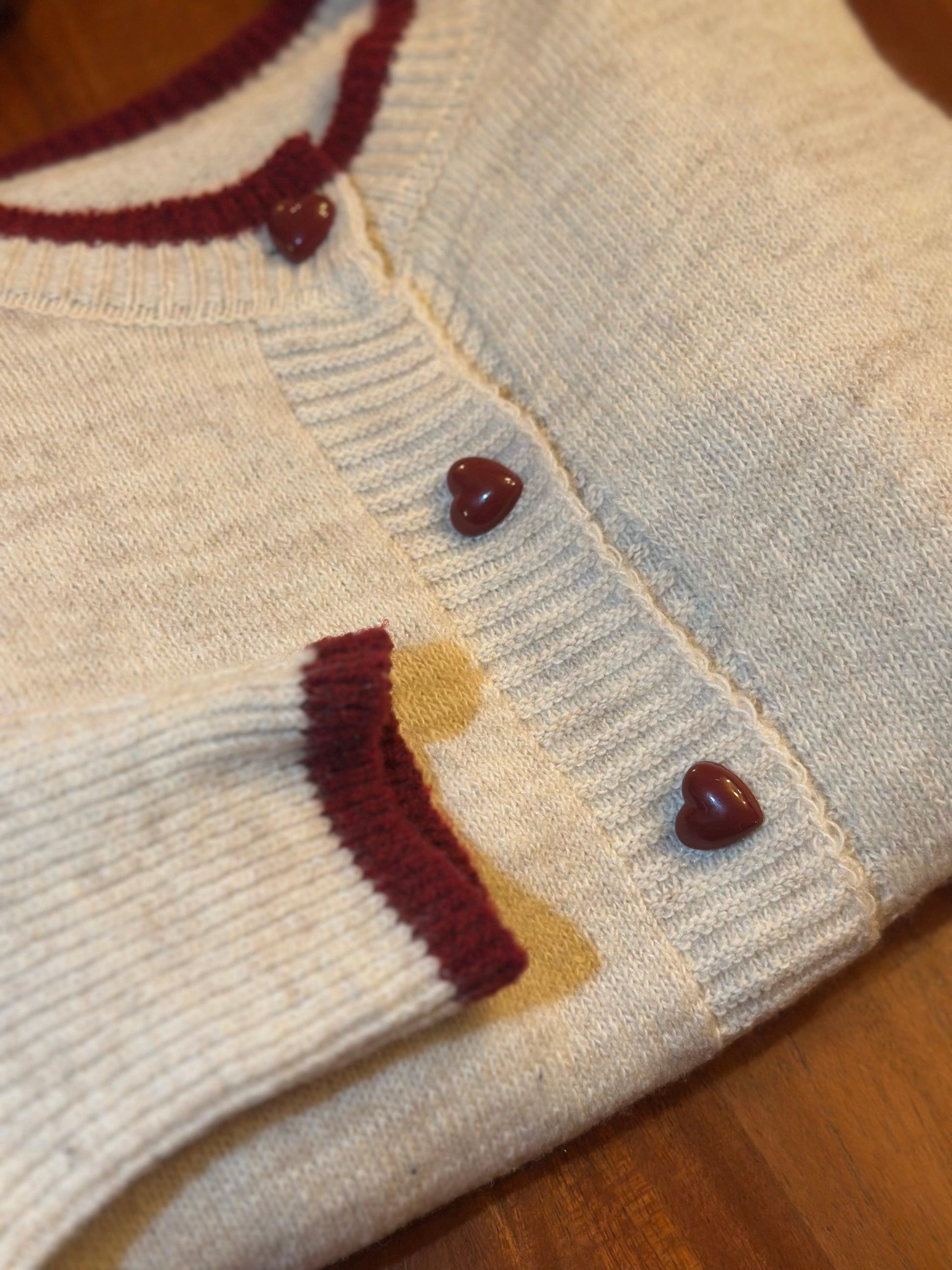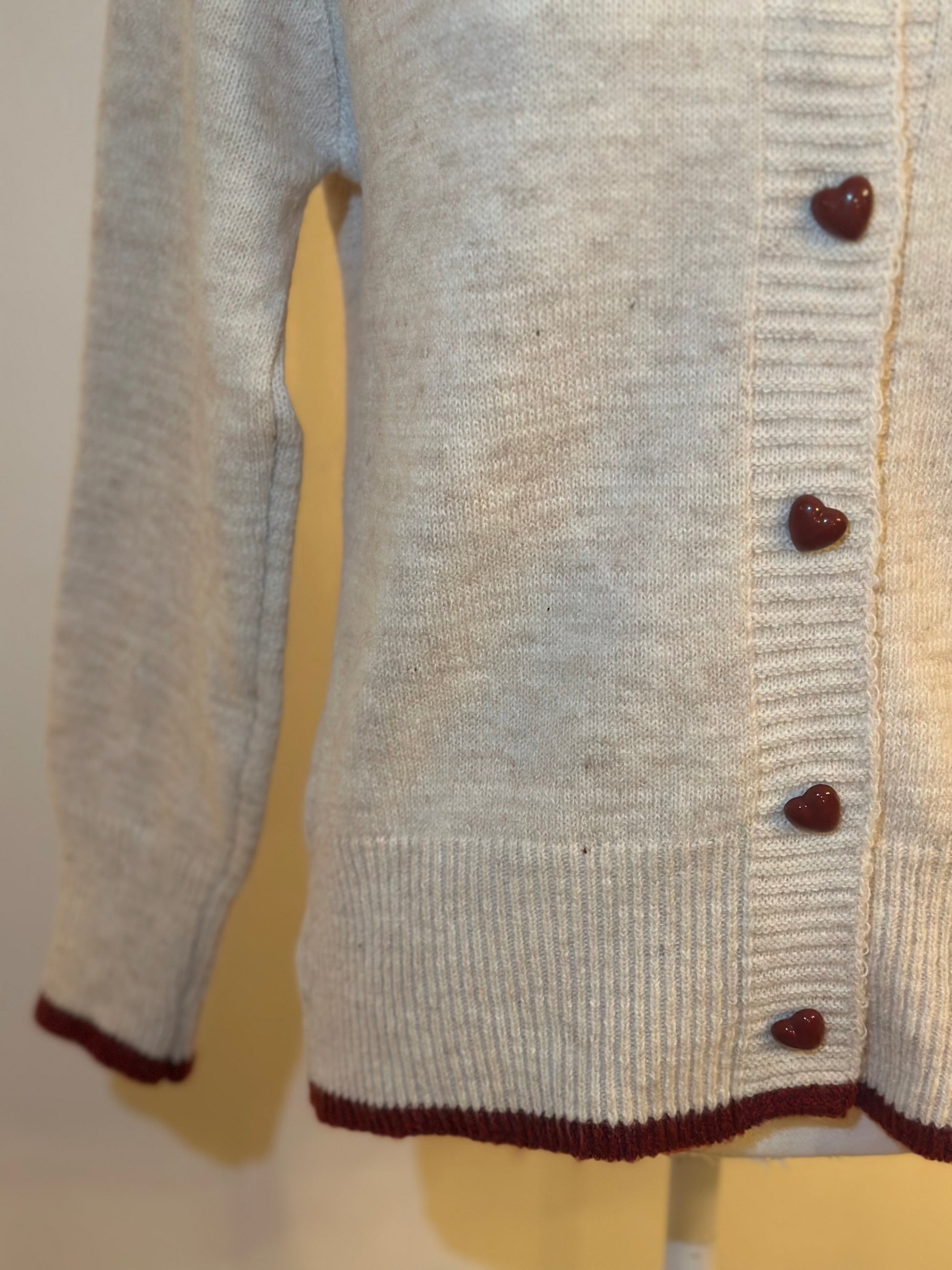 Gilet crème en laine boutons cœur rouges T.36 neuf
