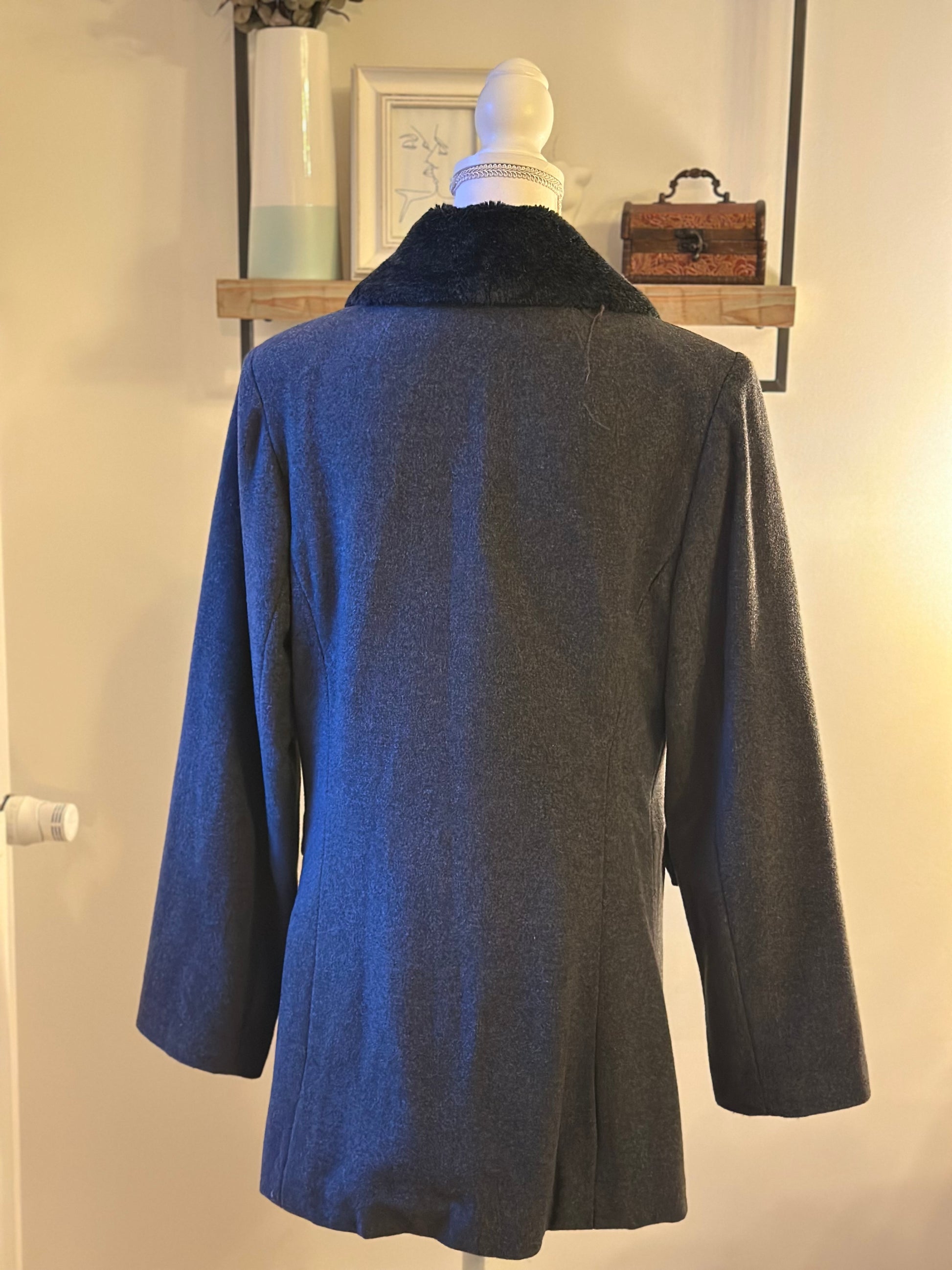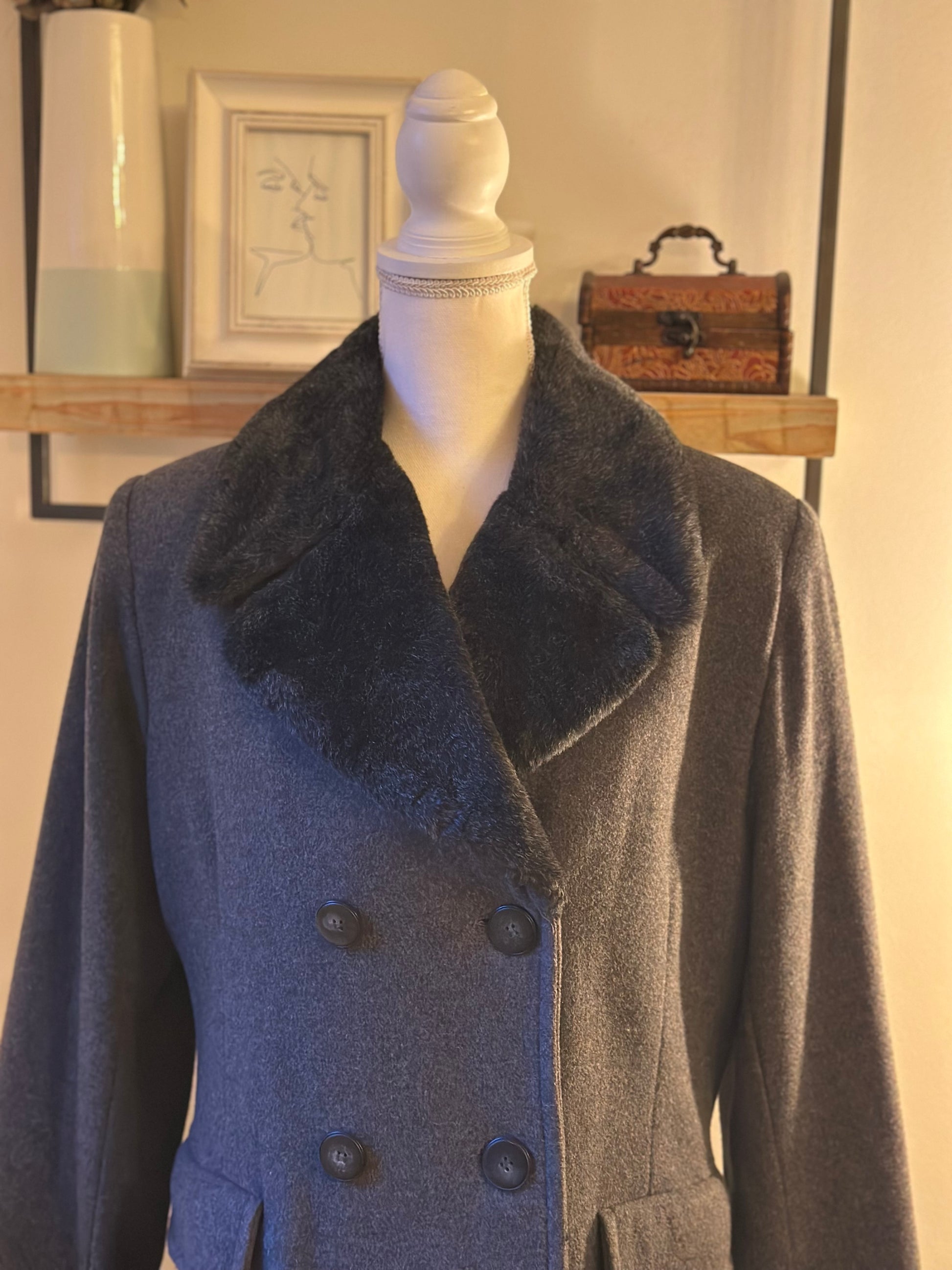 Manteau en laine gris col fausse fourrure Vintage 20s’ T.40