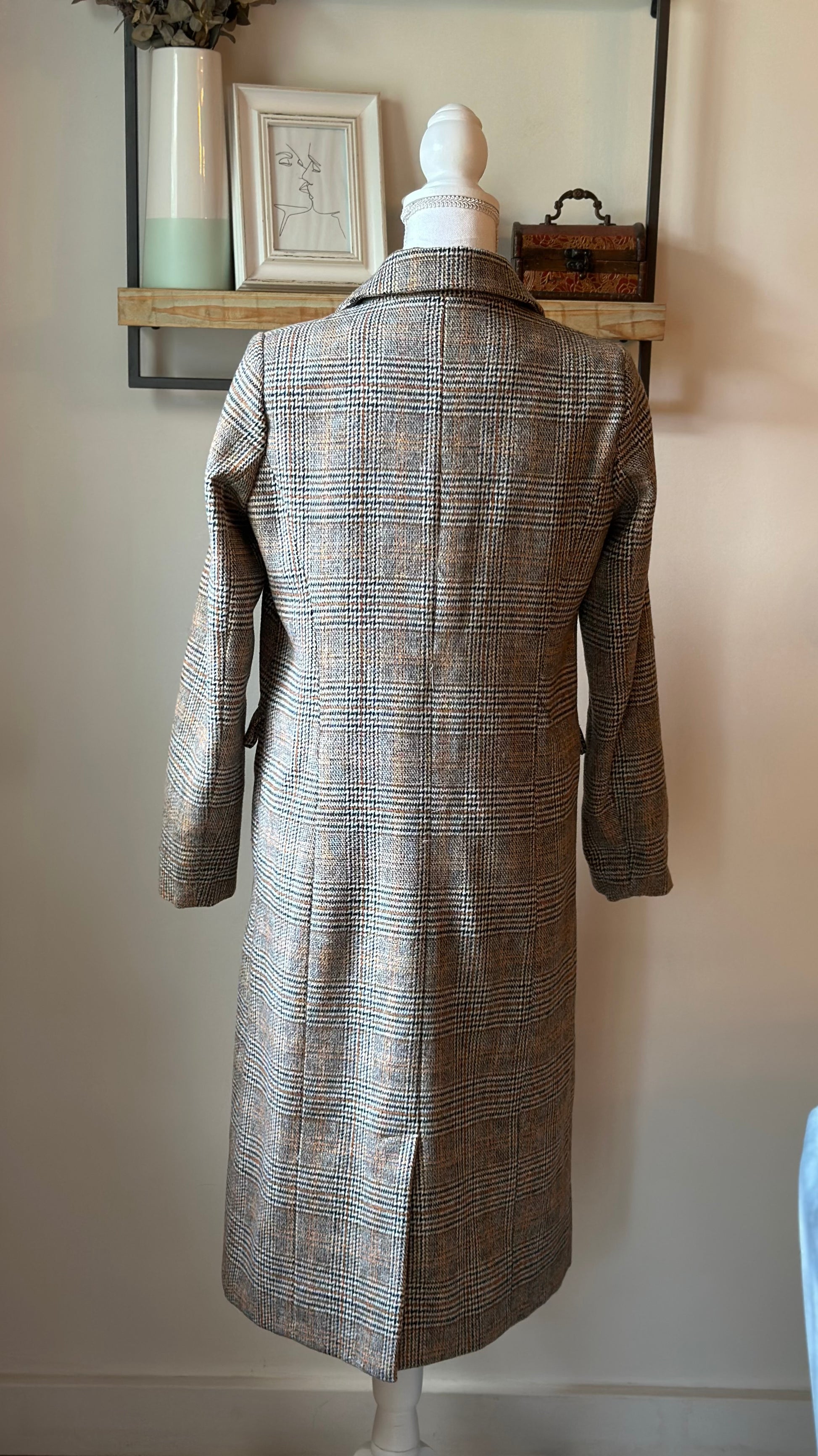 Beau manteau long et chaud lainé à motif pied-de-poule de la collection récente Kiabi, faisant partie des plus belles pièces de la marque. Confectionné dans une matière contenant de la laine, il est doux, chaud et épais. Coupe cintrée élégante, tombé structuré et longueur d’environ 107 cm. Très bon état, porté une seule fois. Prix d’achat : 55 €.