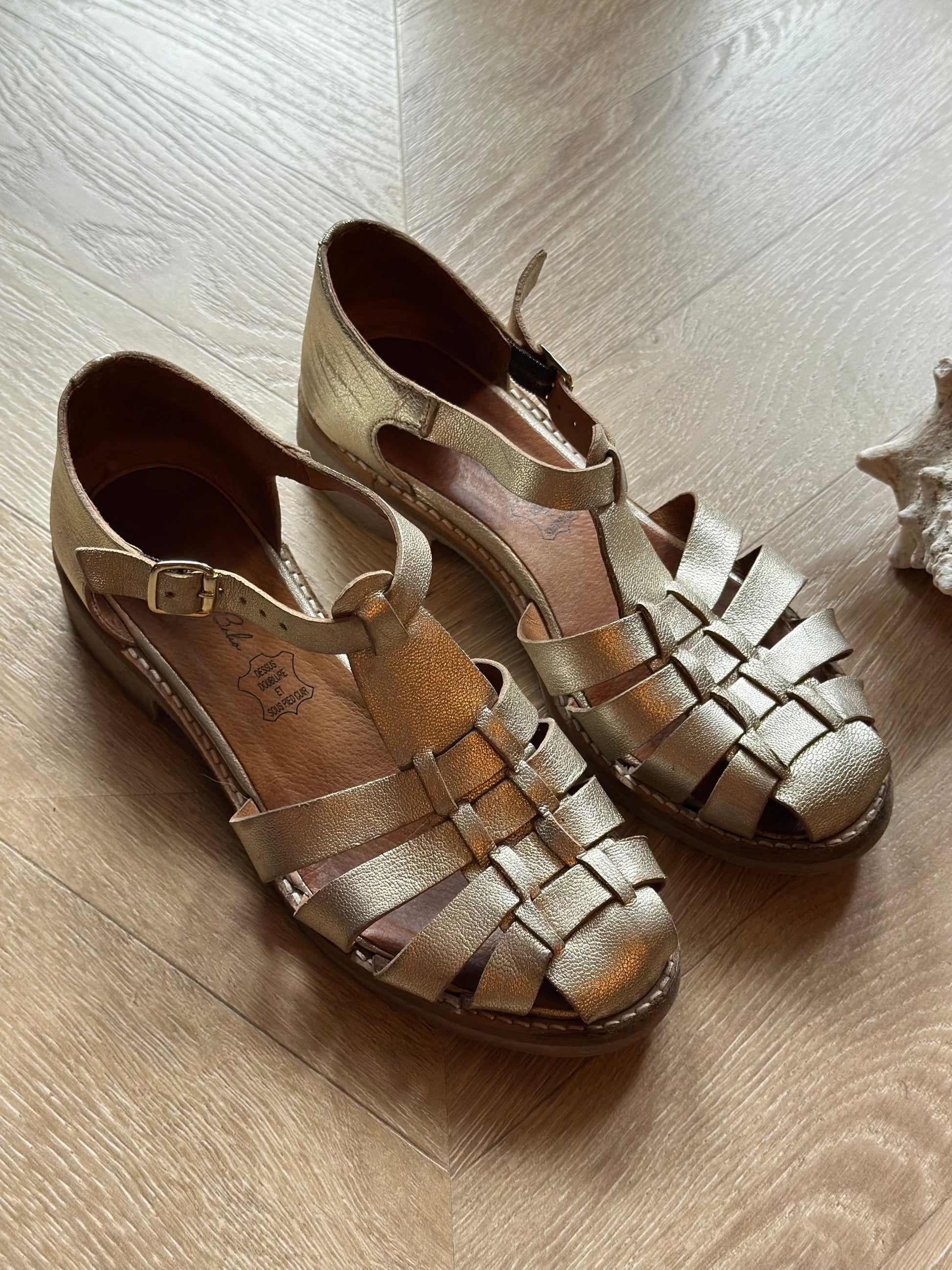 Sandales dorées en cuir T.36