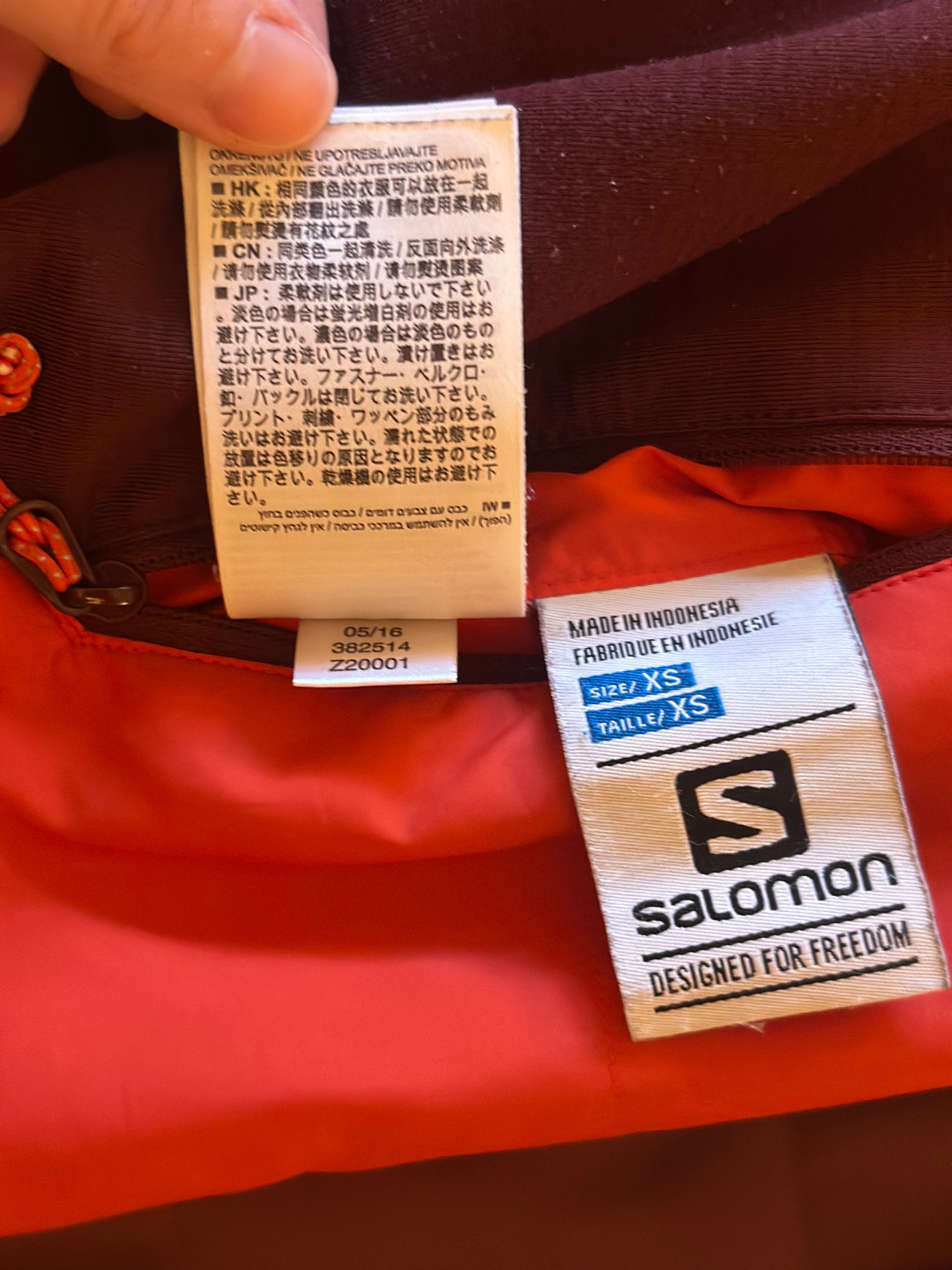 Veste technique Salomon pour femme, modèle réversible pouvant se porter des deux côtés (rouge ou bordeaux), coupe droite confortable avec col montant zippé, manches longues et poches zippées. Isolation Primaloft offrant une excellente chaleur légère et respirante, idéale pour l’outdoor comme pour un usage urbain. Longueur standard, taille XS qui taille normalement. Très bon état général, étiquettes présentes. Prix d’achat, 249 €.